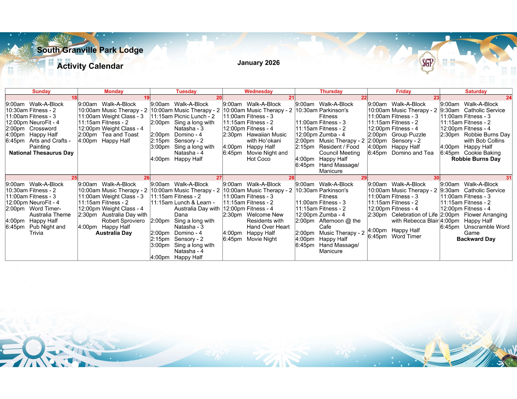 As we look ahead, a variety of engaging events are always on the horizon, ready to offer new experiences and learning opportunities for our residents. Our objective is to present a blend of enjoyable and informative gatherings that cater to a wide array of interests. The communal spirit fostered through these events reinforces the bonds among our residents, making South Granville a lively and connected community. We warmly invite every resident to participate, enjoy the camaraderie, and make the most of the social activities provided. Each event represents an opportunity for fun, learning, and forming new friendships within our cherished community.